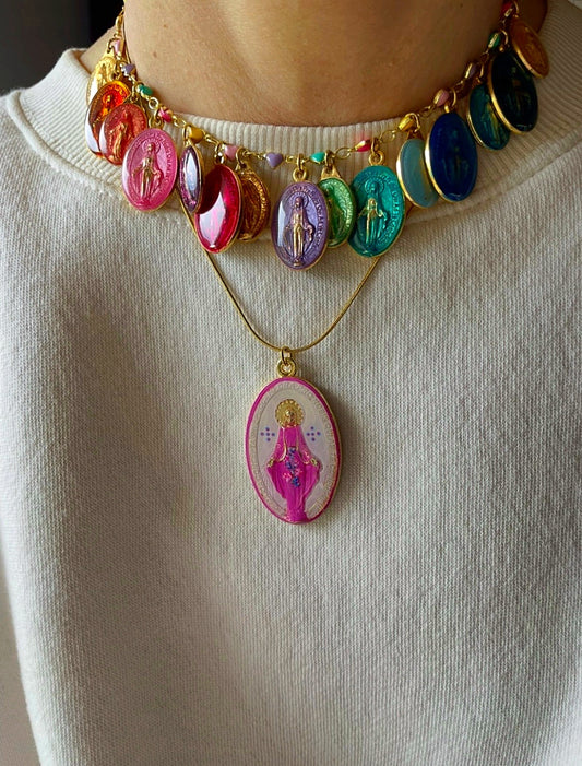 COLLANA CON MEDAGLIA MIRACOLOSA DIPINTA A MANO