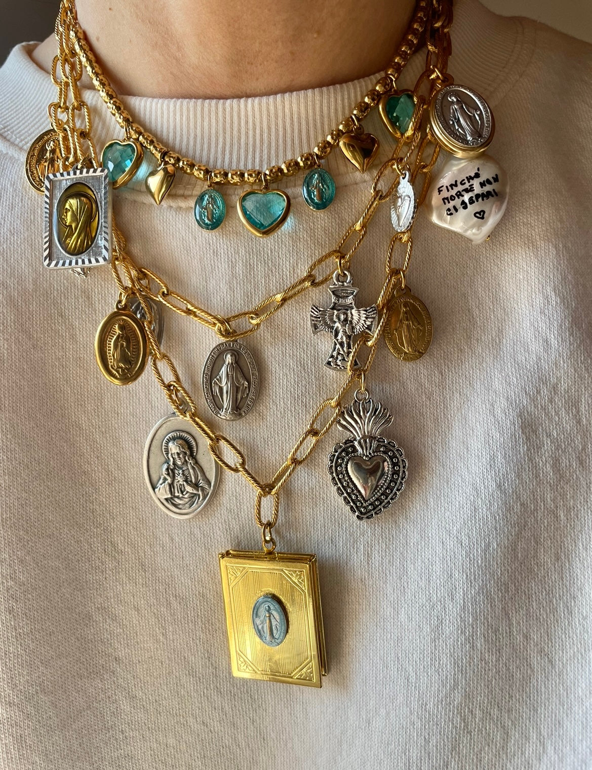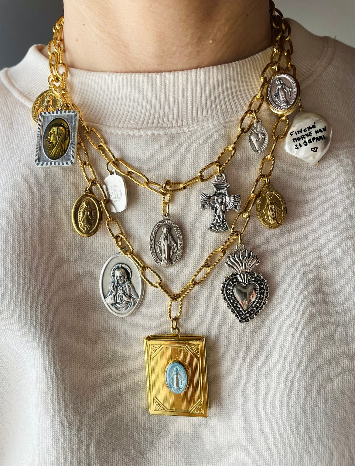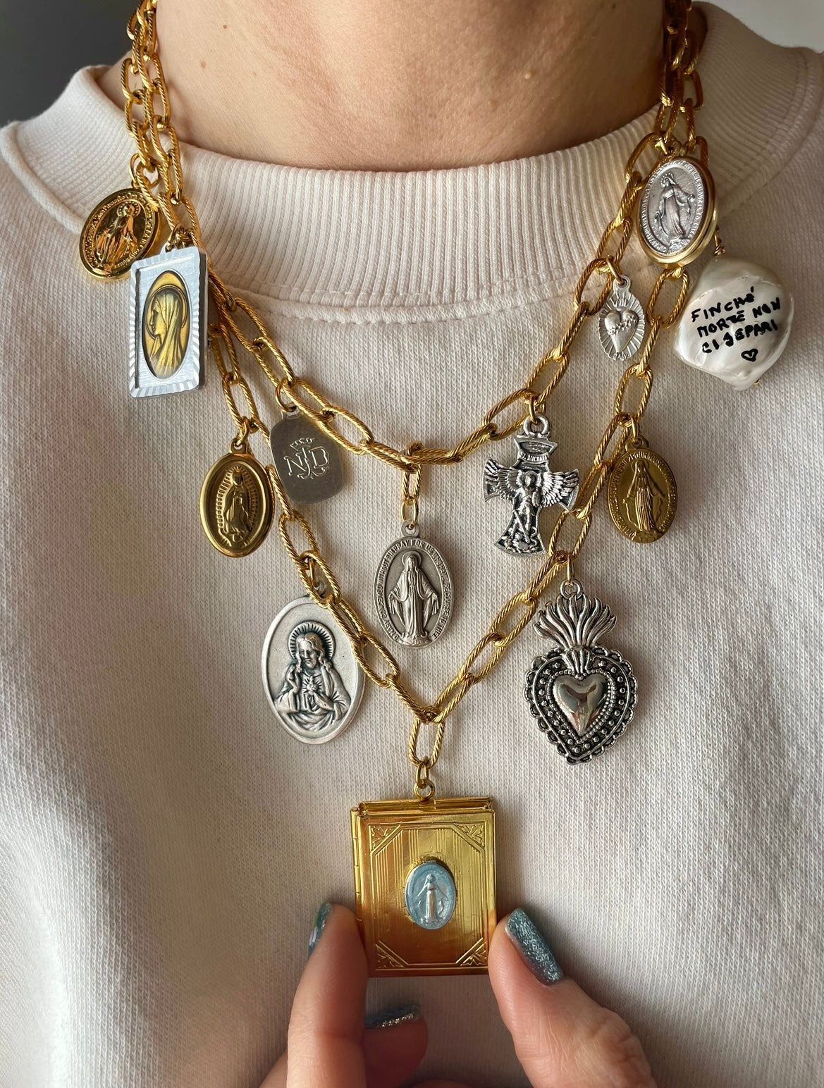 La bellezza di questa collana e' garantita dai due fili ricchissimi di medaglie religiose di cui è composta