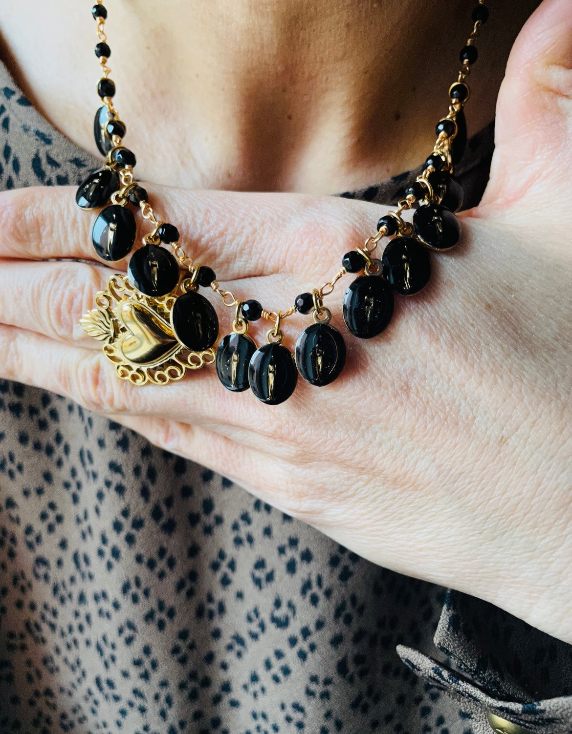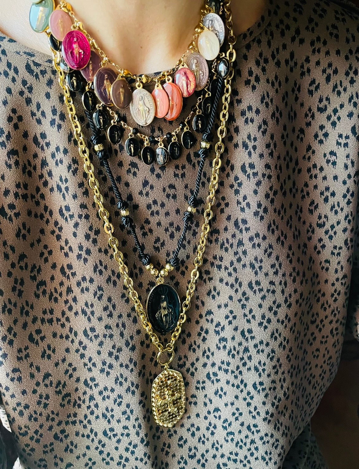 Quando questo nero viene unito al simbolo sacro della Madonnina dipinta a mano, il gioiello cessa di essere "alla moda" e diventa un vero e proprio talismano personale: un oggetto che combina l'energia della terra (Onice) con la protezione spirituale (Madonnina), per chi desidera una presenza solenne e discreta che la difenda ogni giorno.