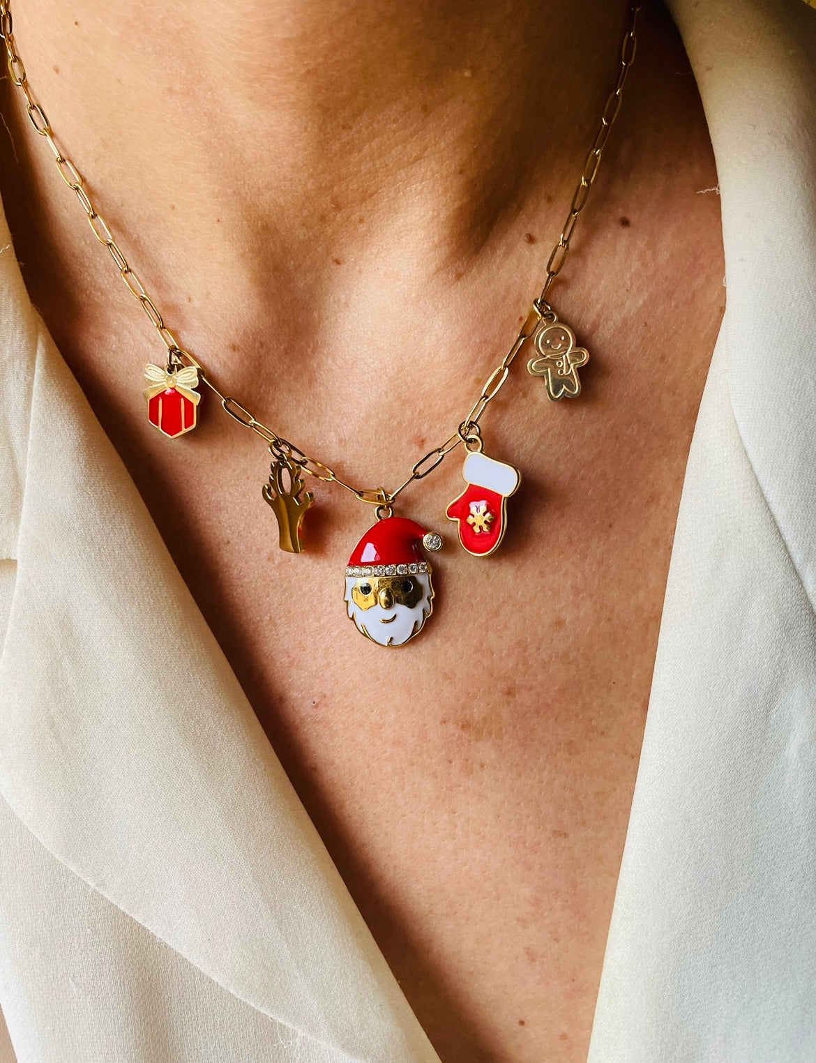 Questa deliziosa collanina cattura tutta la meraviglia del Natale in una linea di pendagli scintillanti, smaltati con i colori iconici delle feste: il rosso passionale e il bianco candido.