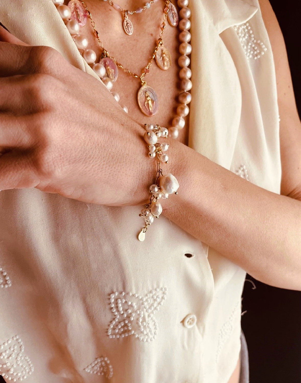 Bracciale in acciaio inossidabile.composto da perline di fiume e perle in resina bianco perla.