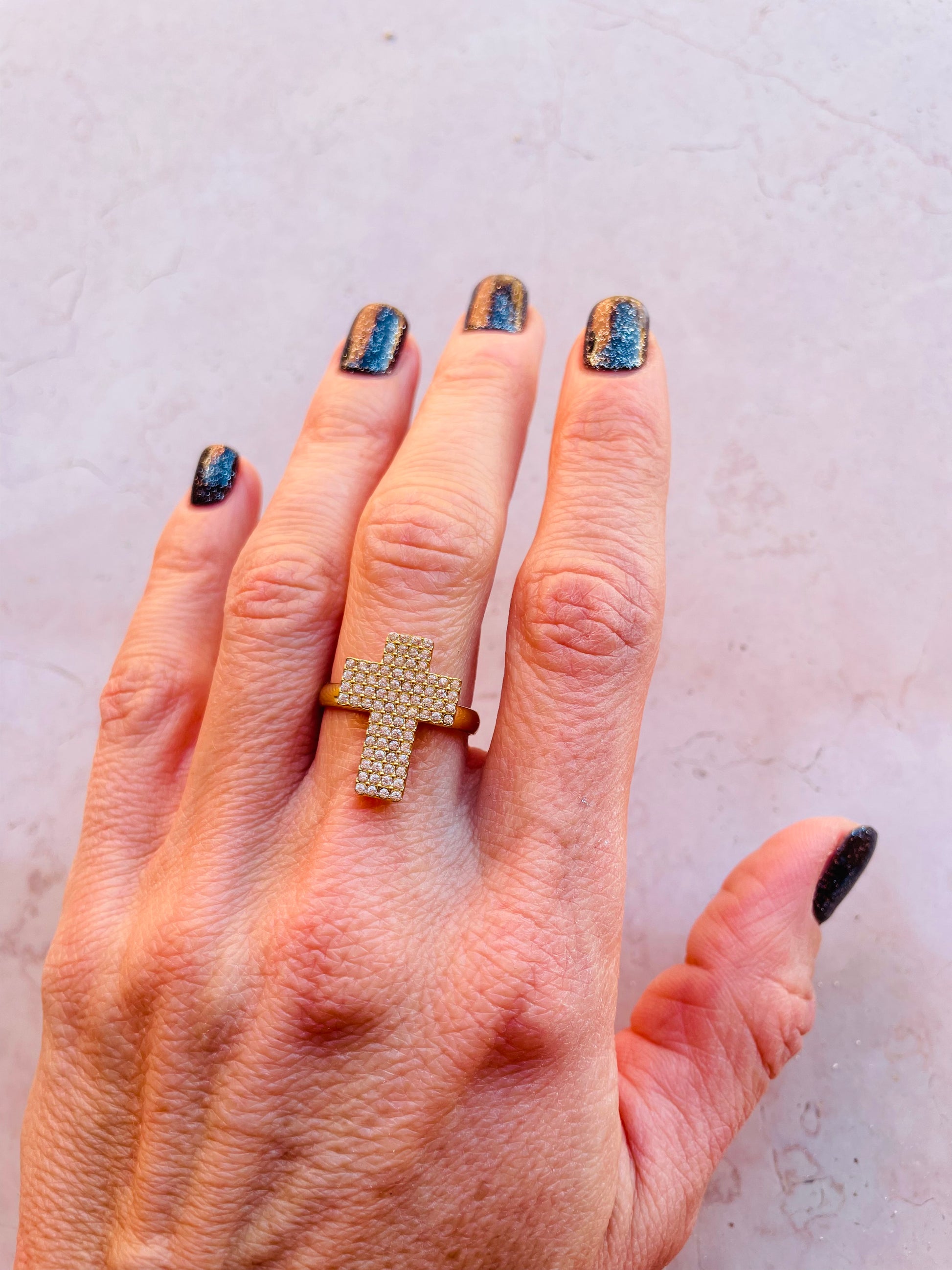 Anello in acciaio inossidabile, tempestato di piccoli zirconi, misura regolabile.