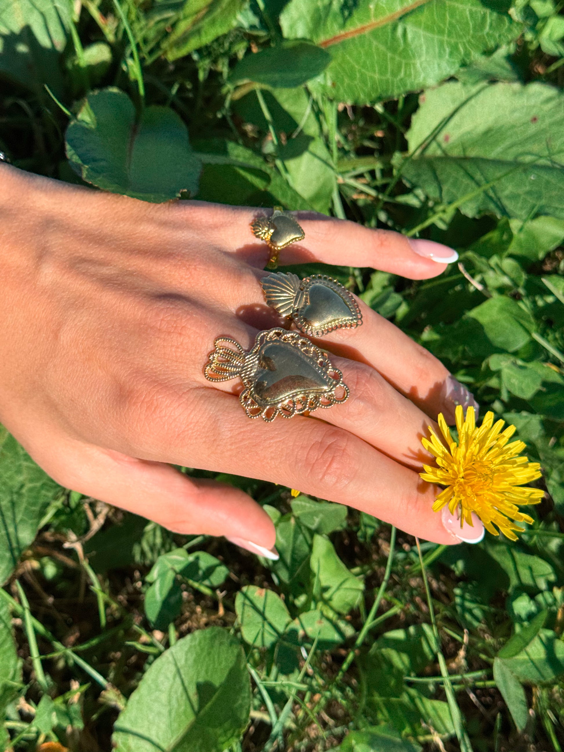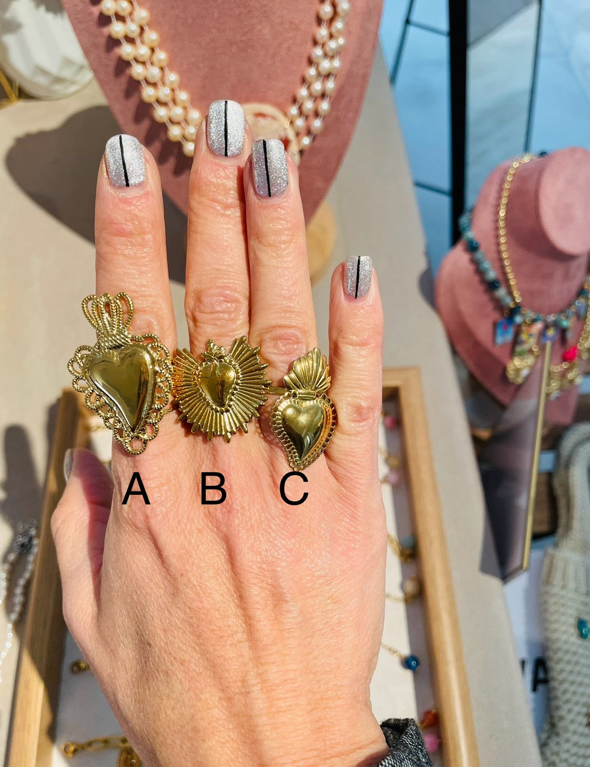 Anello in acciaio inossidabile dorato con cuore sacro.
