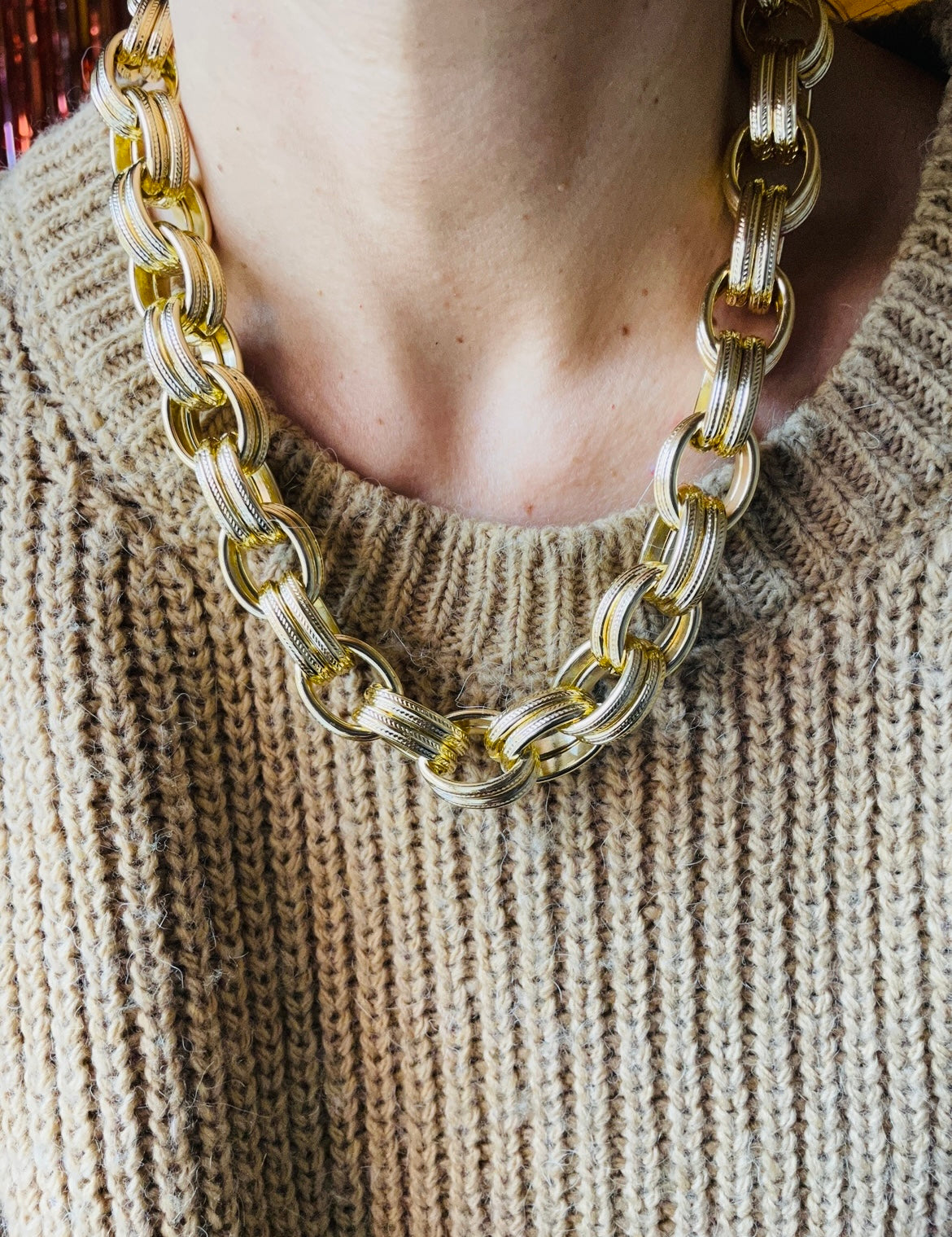 Caratterizzata da maglie ovali grosse questa collana incarna il trend delle catene massicce con un tocco di raffinatezza.