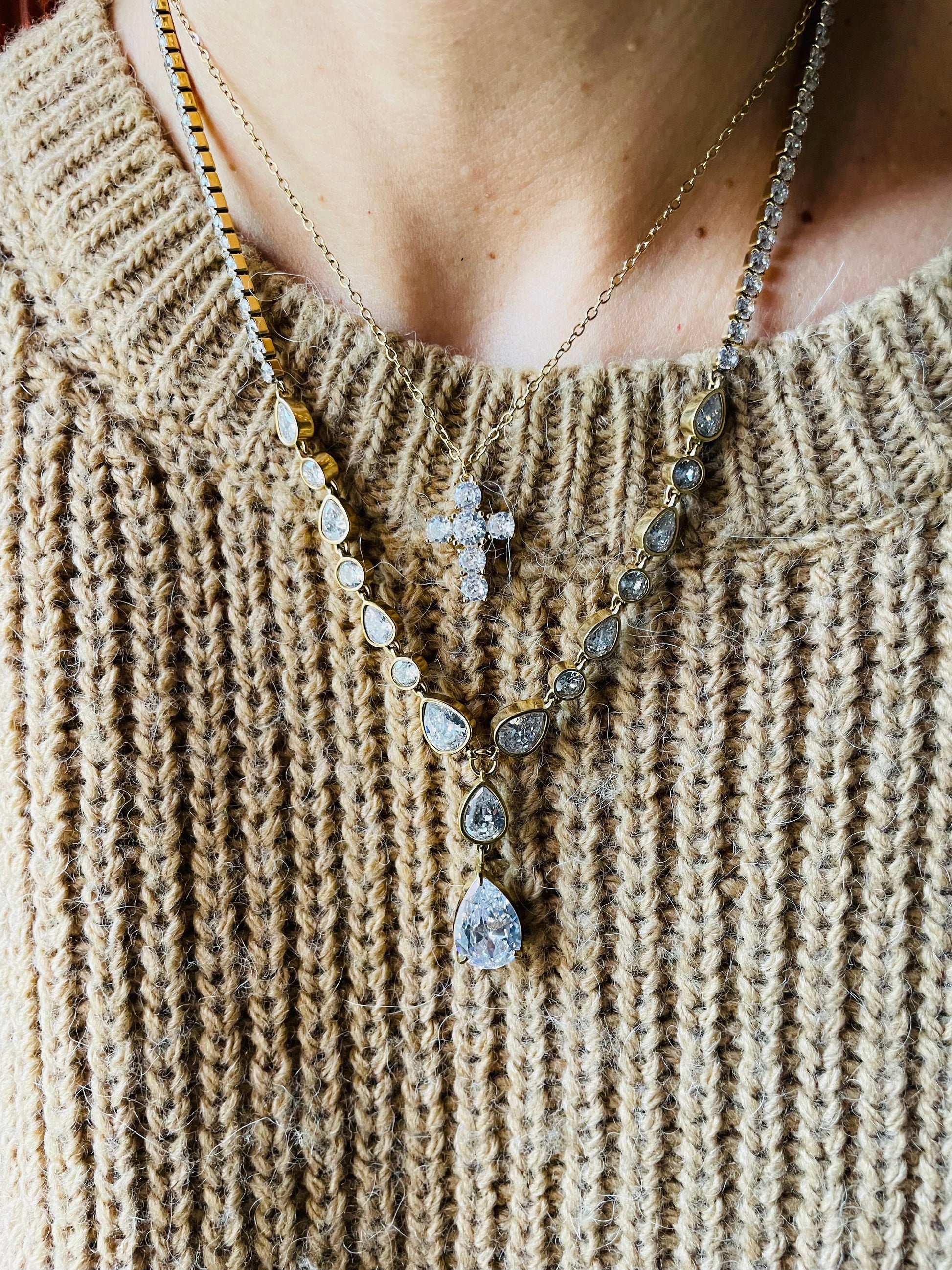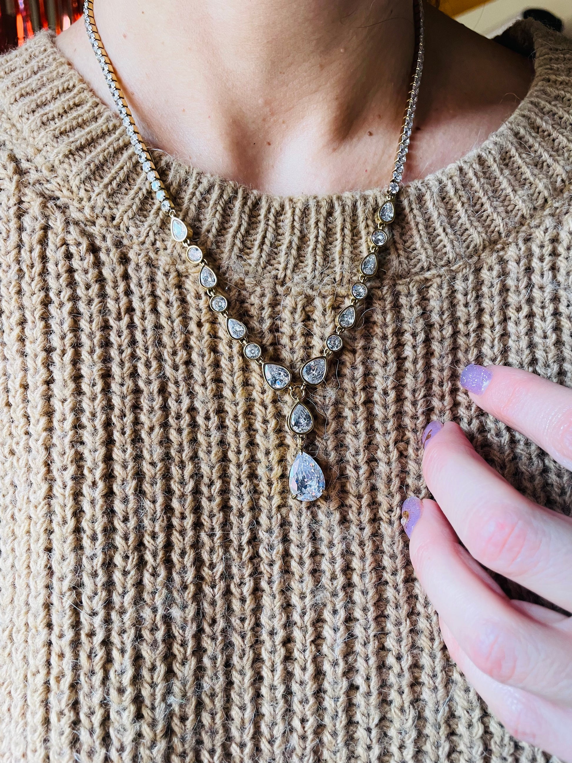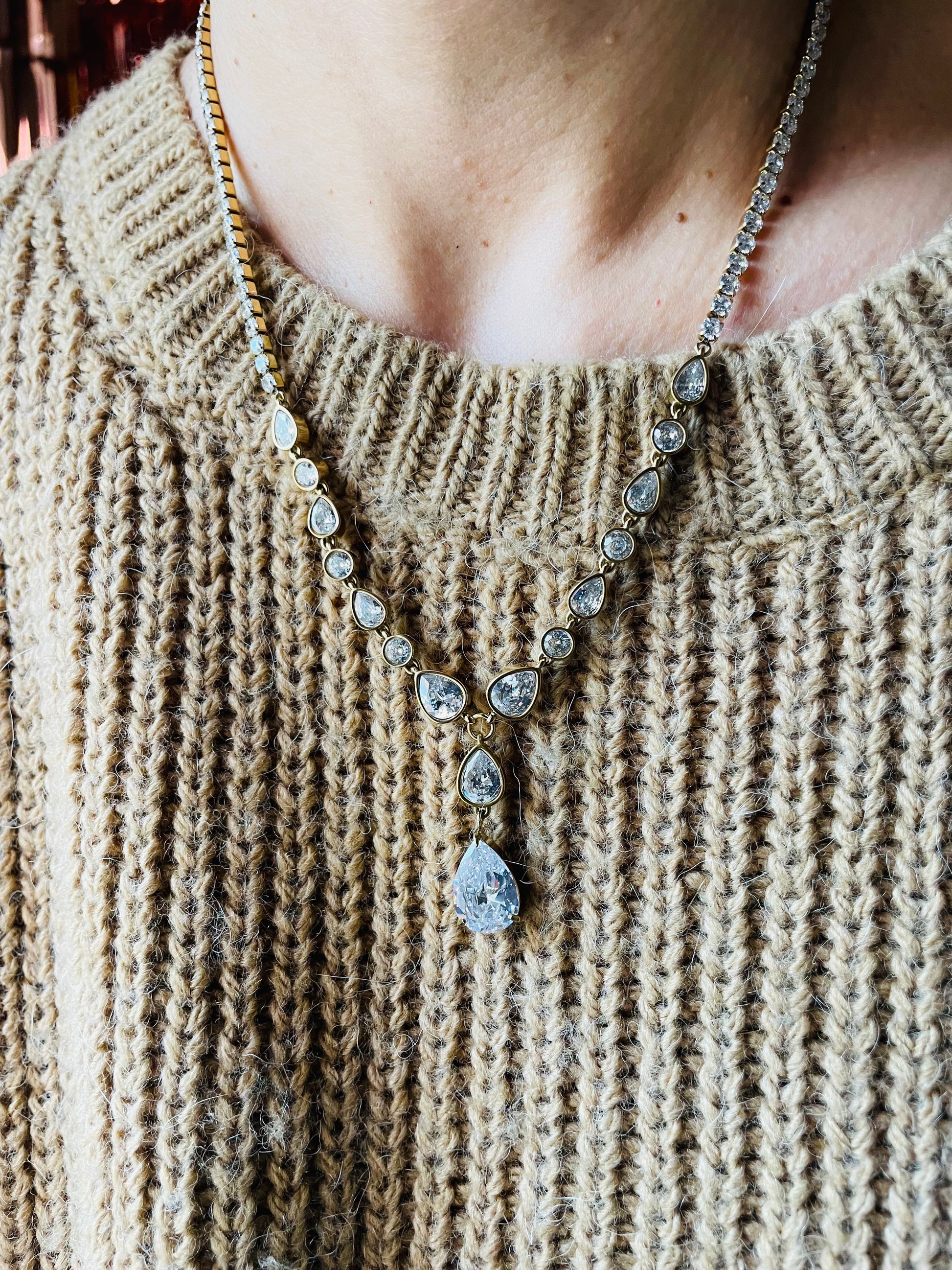 Design scintillante con pendente a goccia e dettagli di zirconi
