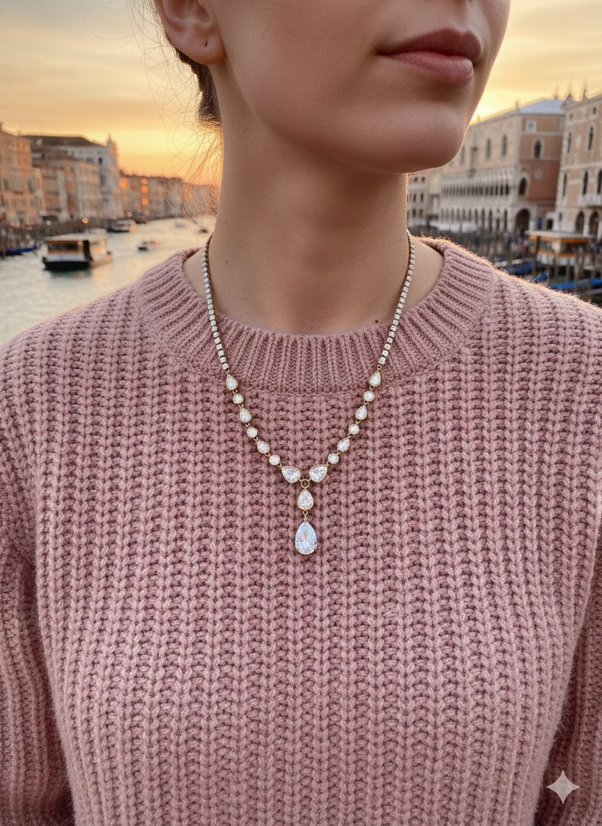 Immagina l'eleganza senza tempo del Canal Grande al tramonto, racchiusa in un gioiello. Questa collana è l'espressione massima di lusso discreto e raffinatezza impeccabile.