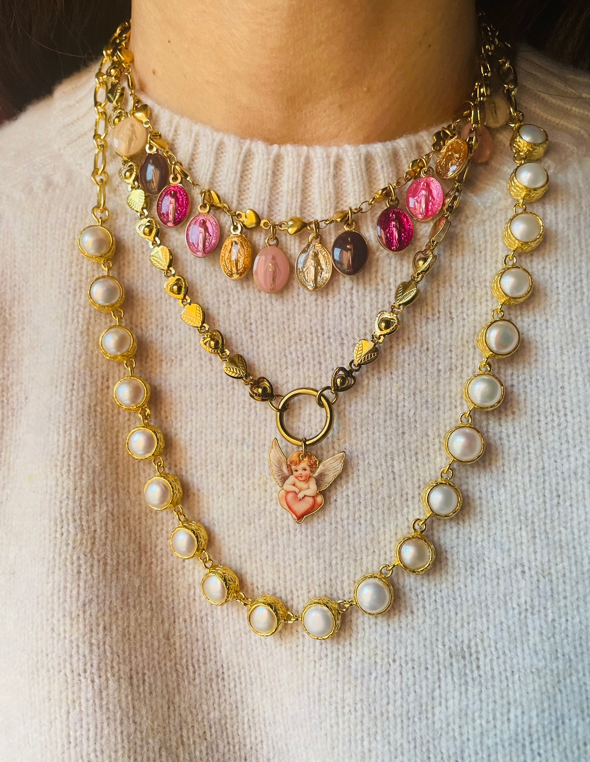 Ogni cabochon è incastonato a mano in una cornice finemente lavorata che rievoca il fascino dei gioielli d'altri tempi, reinterpretati per la donna moderna che cerca un lusso distintivo e autentico