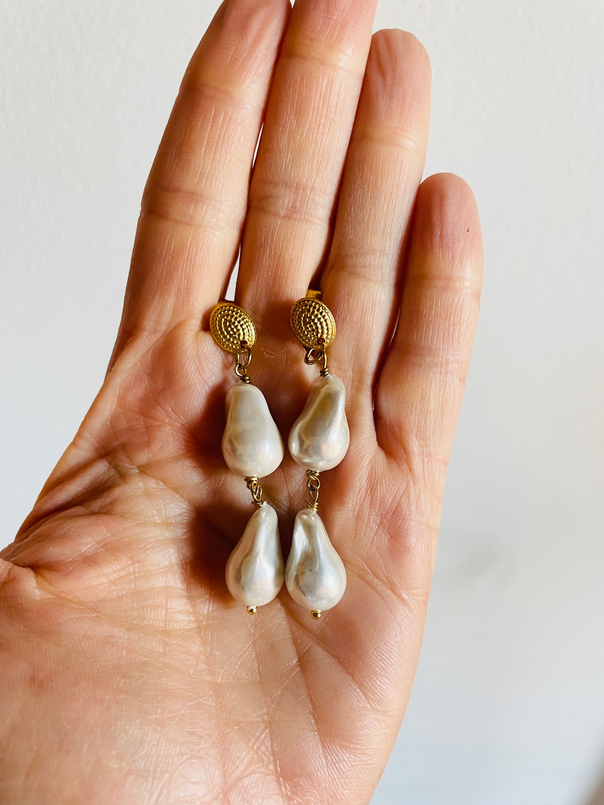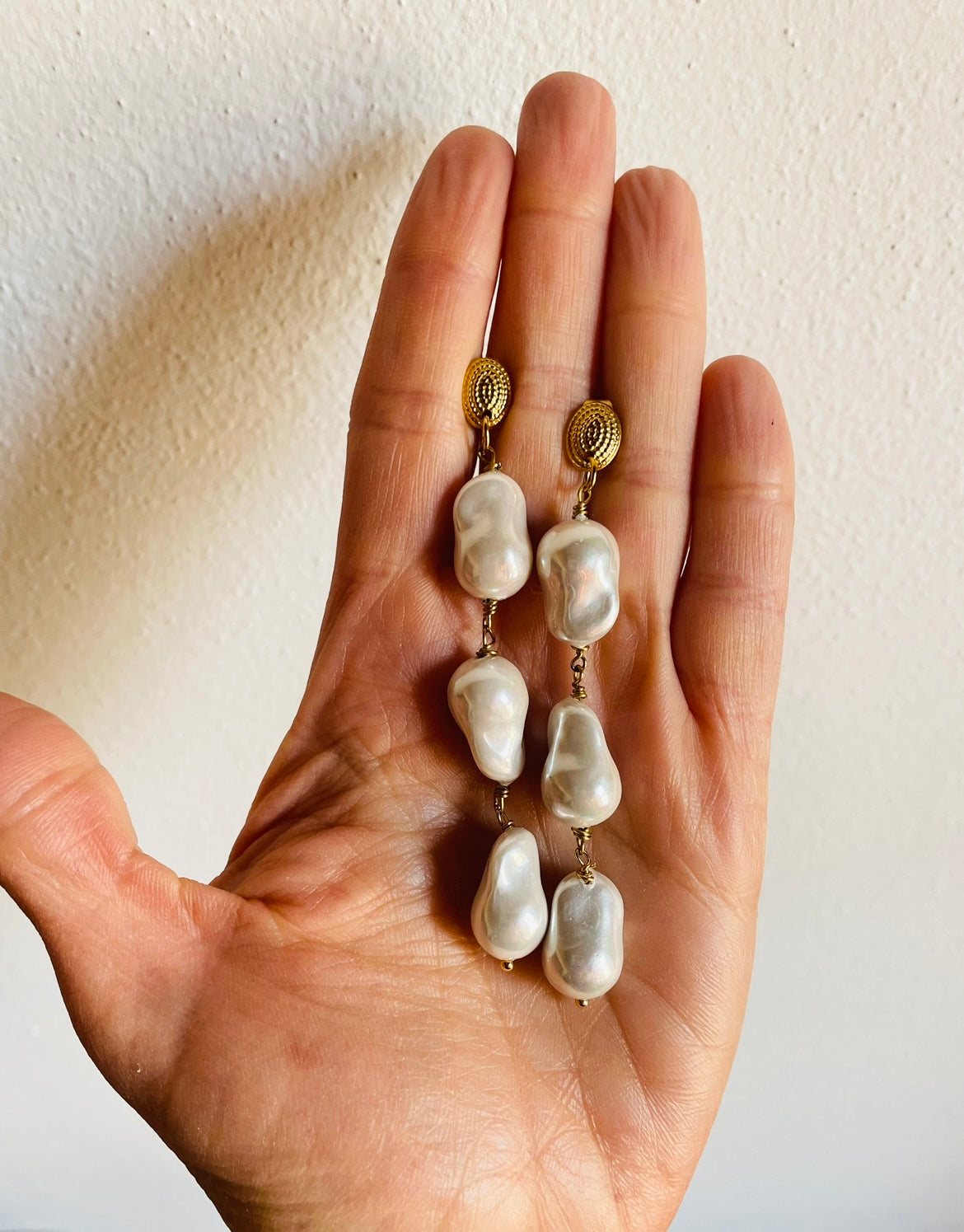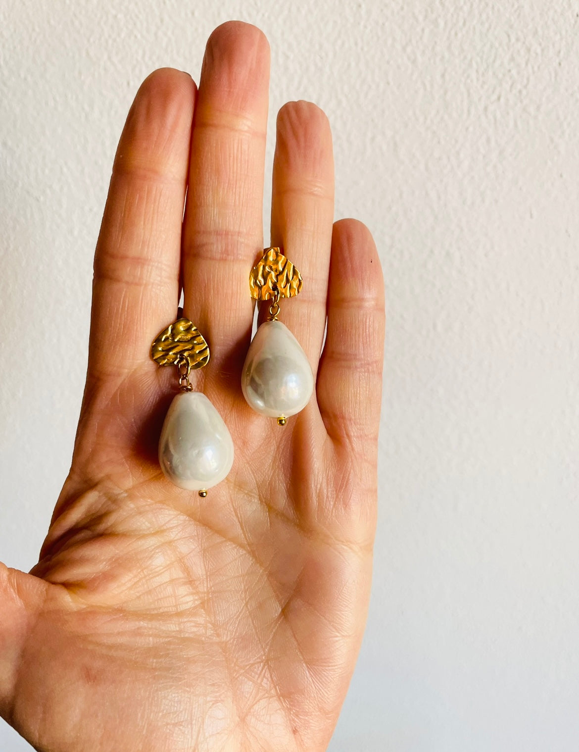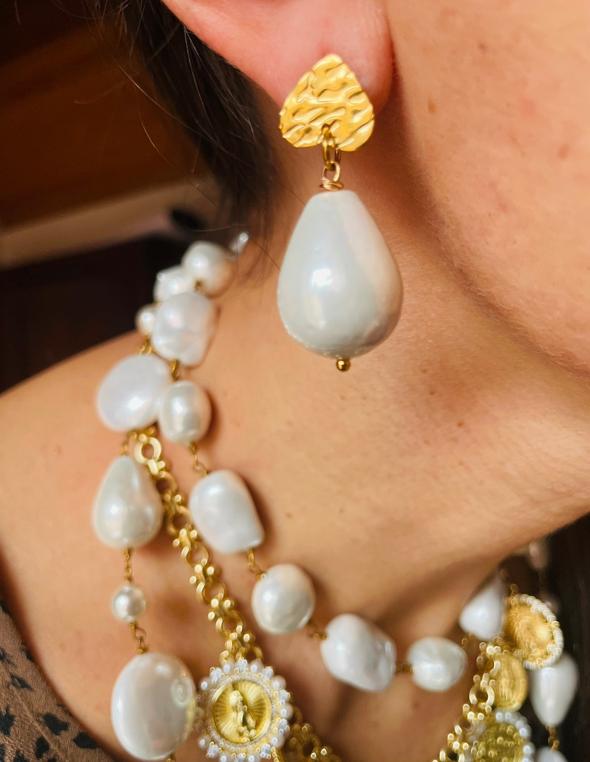 Realizzati con perno e filo in acciaio inossidabile e perle di Maiorca, questi orecchini uniscono eleganza, durata e armonia.