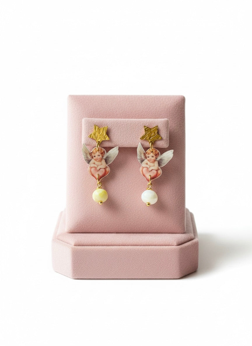 Questi orecchini con coppie di angioletti sono nati per stare insieme come custodi silenziosi e leggeri. Si appoggiano con grazia alle orecchie e sembrano sussurrare: “Non sei sola. Siamo qui.”