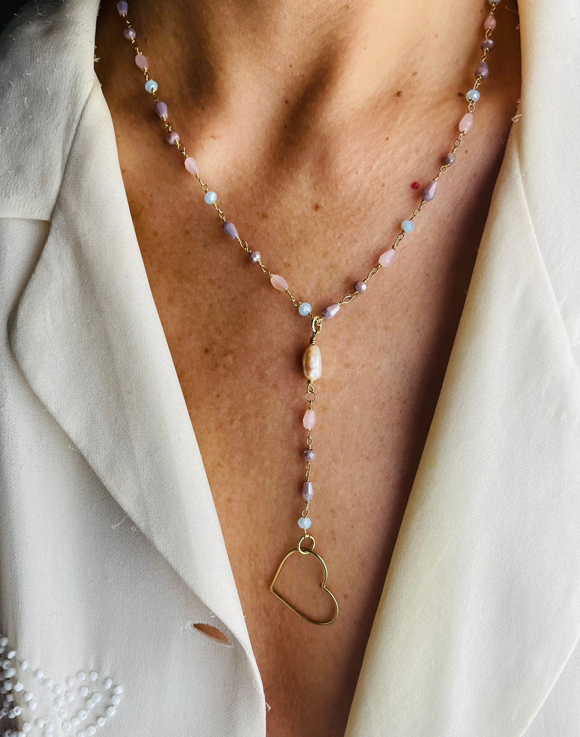 È luminosi, elegante, ma al tempo stesso semplice e pieni di calore. Le indossi e senti subito che parla di te, della tua luce interiore, della tua pace.