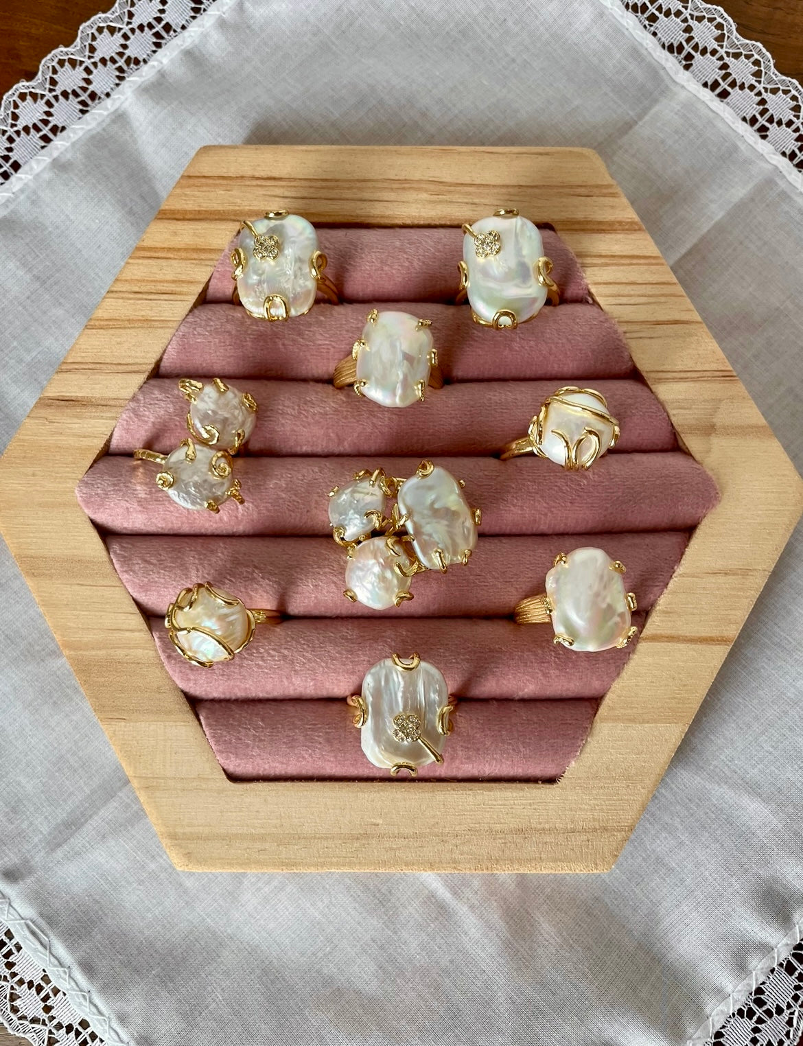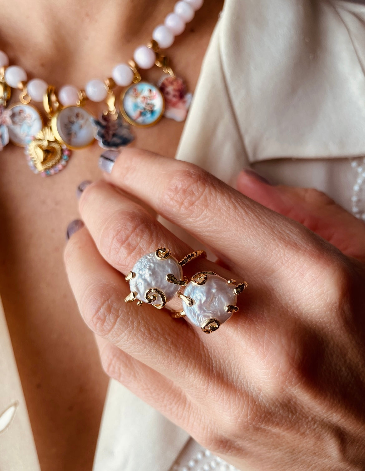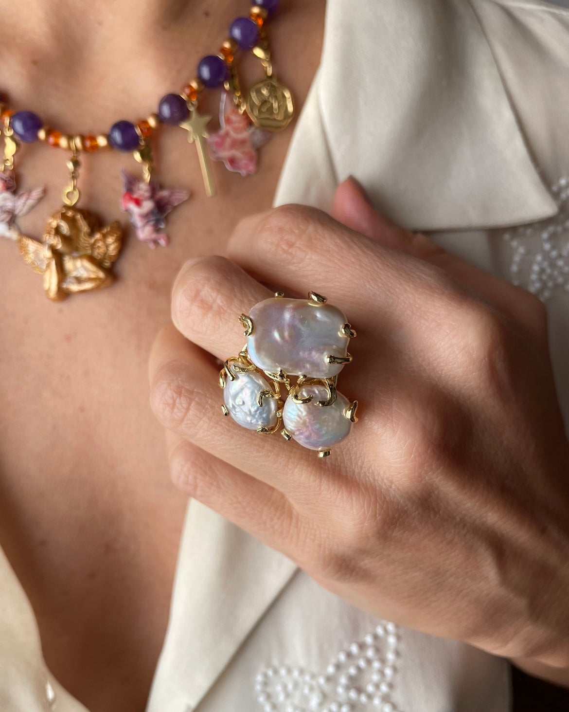 Scopri l’eleganza sospesa tra luce e artigianalità con questo anello unico.