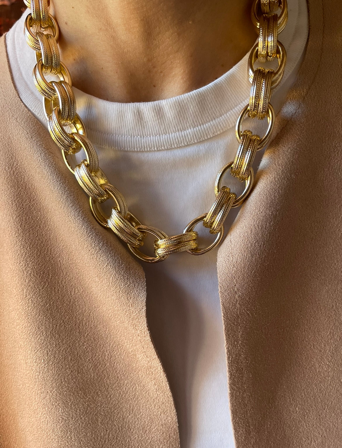 Questa collana a catena audace e di tendenza è il pezzo statement perfetto.