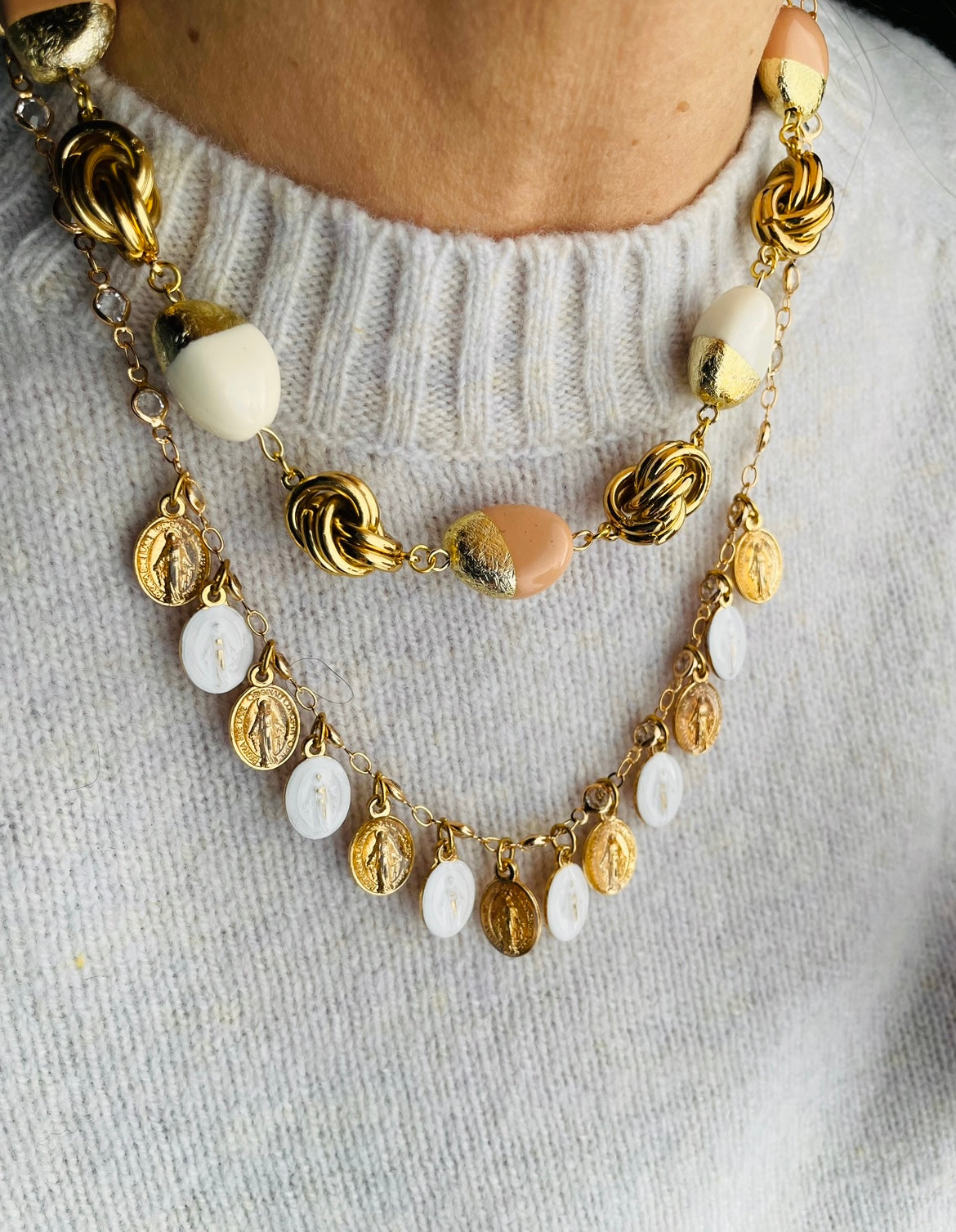 Medaglie in zama,collana in rame con cristalli bianco trasparente