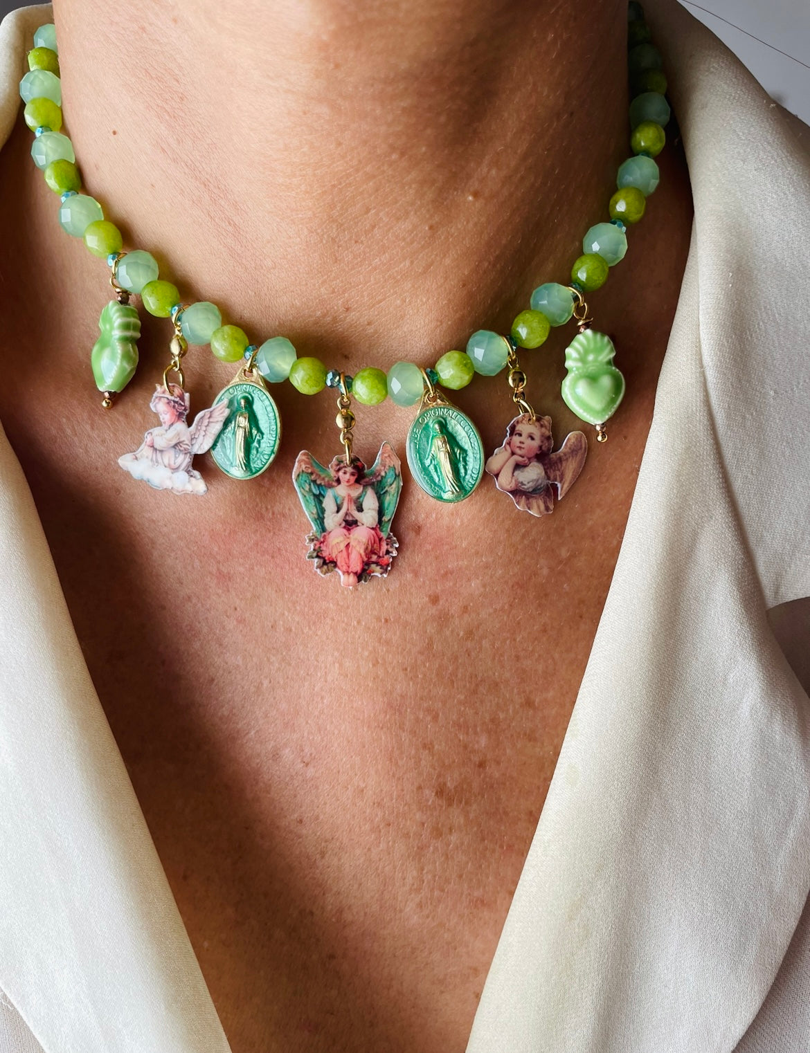 Il verde è il colore dei germogli, della rinascita e della speranza. Questa collana accompagna chi sente il desiderio di ricominciare, di liberarsi da un passato che pesa e di aprirsi a strade nuove.Un angelo ti guida a ritrovare il coraggio di scegliere la tua libertà, passo dopo passo, con fiducia🌱💫
