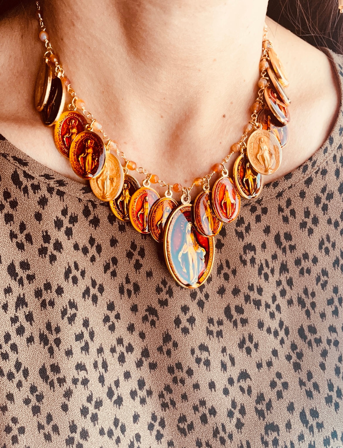 La collana Ambrosina abbinata a quella con i cristalli crea un effetto che scalda lo sguardo come una fiamma viva 🔥✨