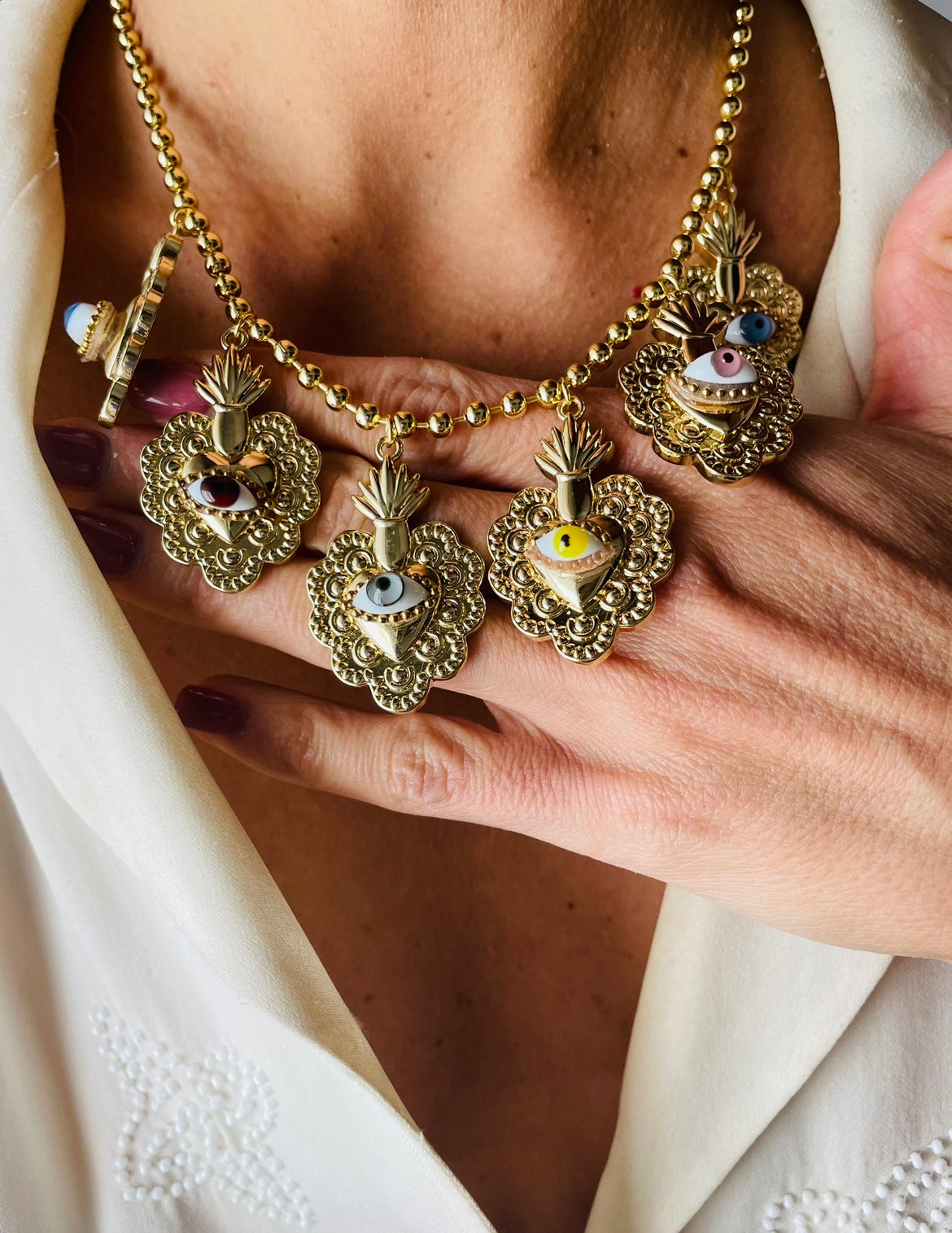 Sei cuori sacri, ognuno con un occhio al centro che veglia e protegge.