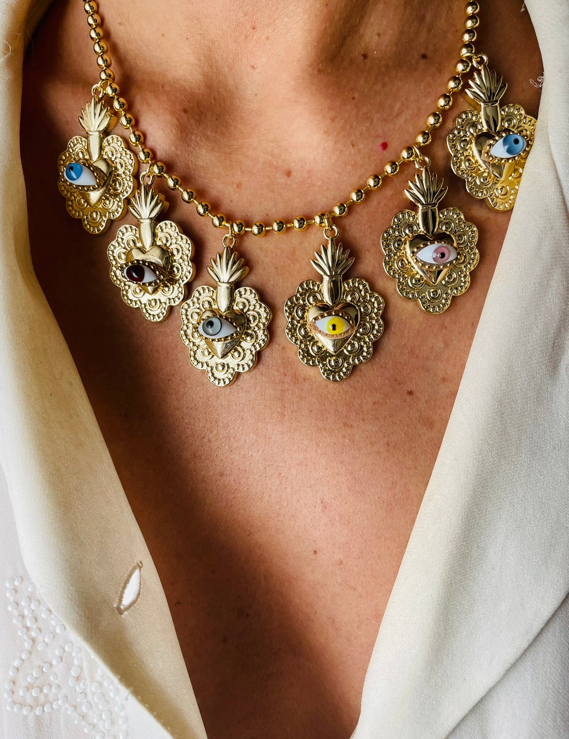 L’occhio, come nella tradizione greca, tiene lontane le energie negative e attira fortuna e serenità.